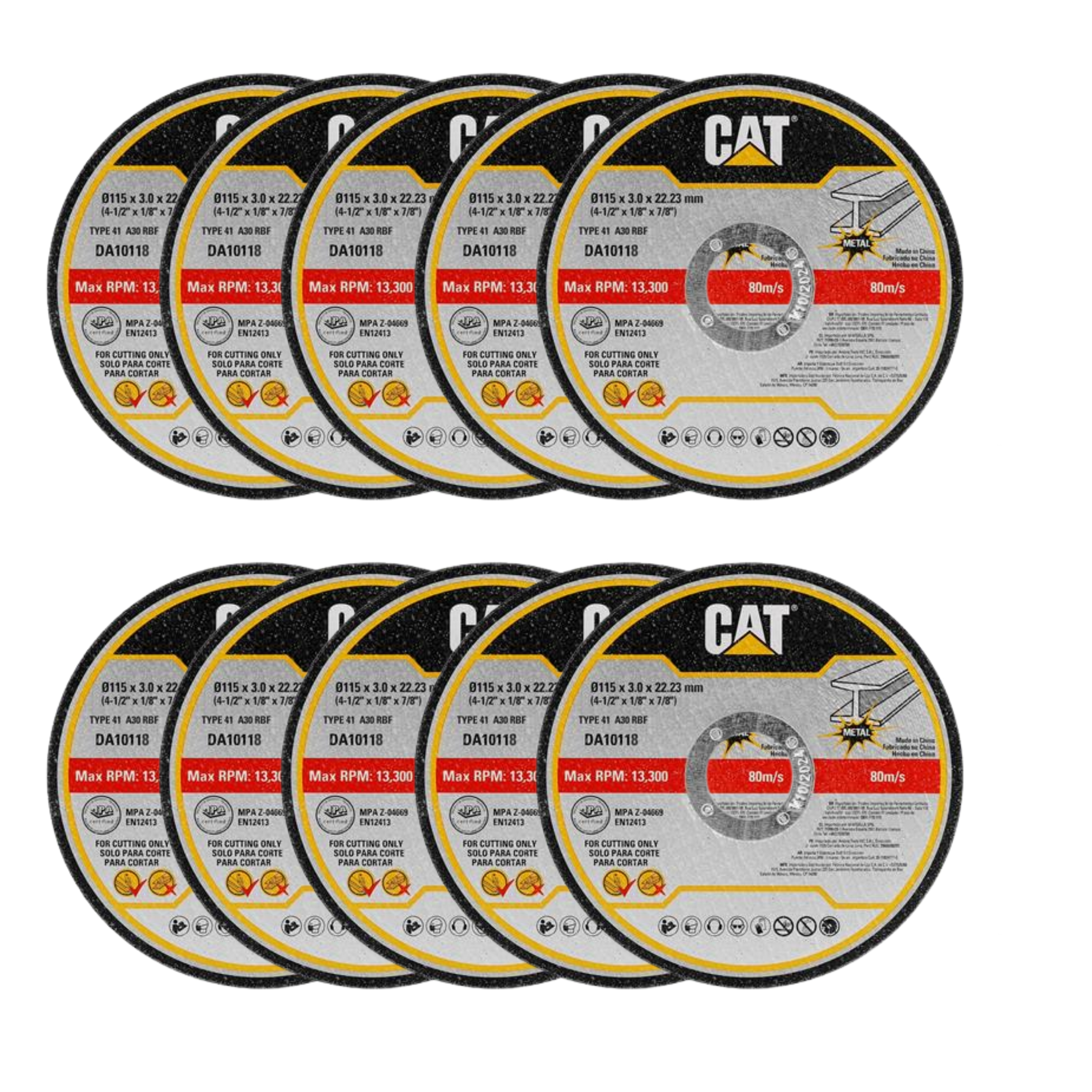חבילת 10 דיסקים לחיתוך מתכת וברזל 115X1.6 מ"מ CAT DA10116