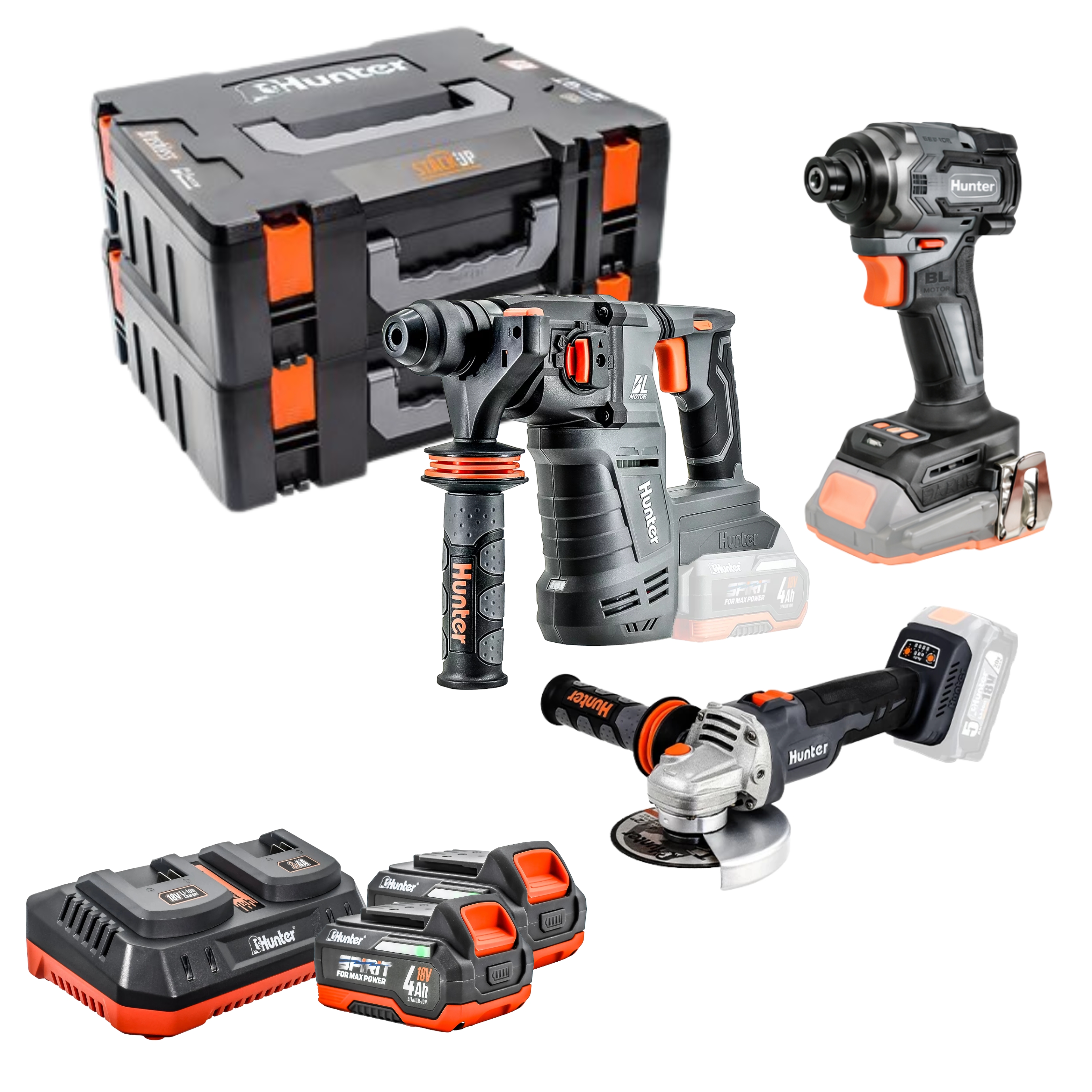 סט 3 כלים נטענים 18V כולל 2 סוללות 4AH + מטען מהיר כפול וארגזים HUNTER HD STACK UP 102705-026 ₪1,999 ₪1,690
