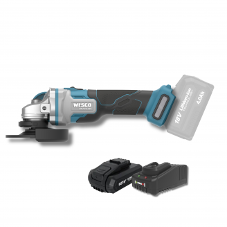 משחזת זווית״5 נטענת 18v בראשלס + סוללה 4AH + מטען מהיר WESCO WS2890.9