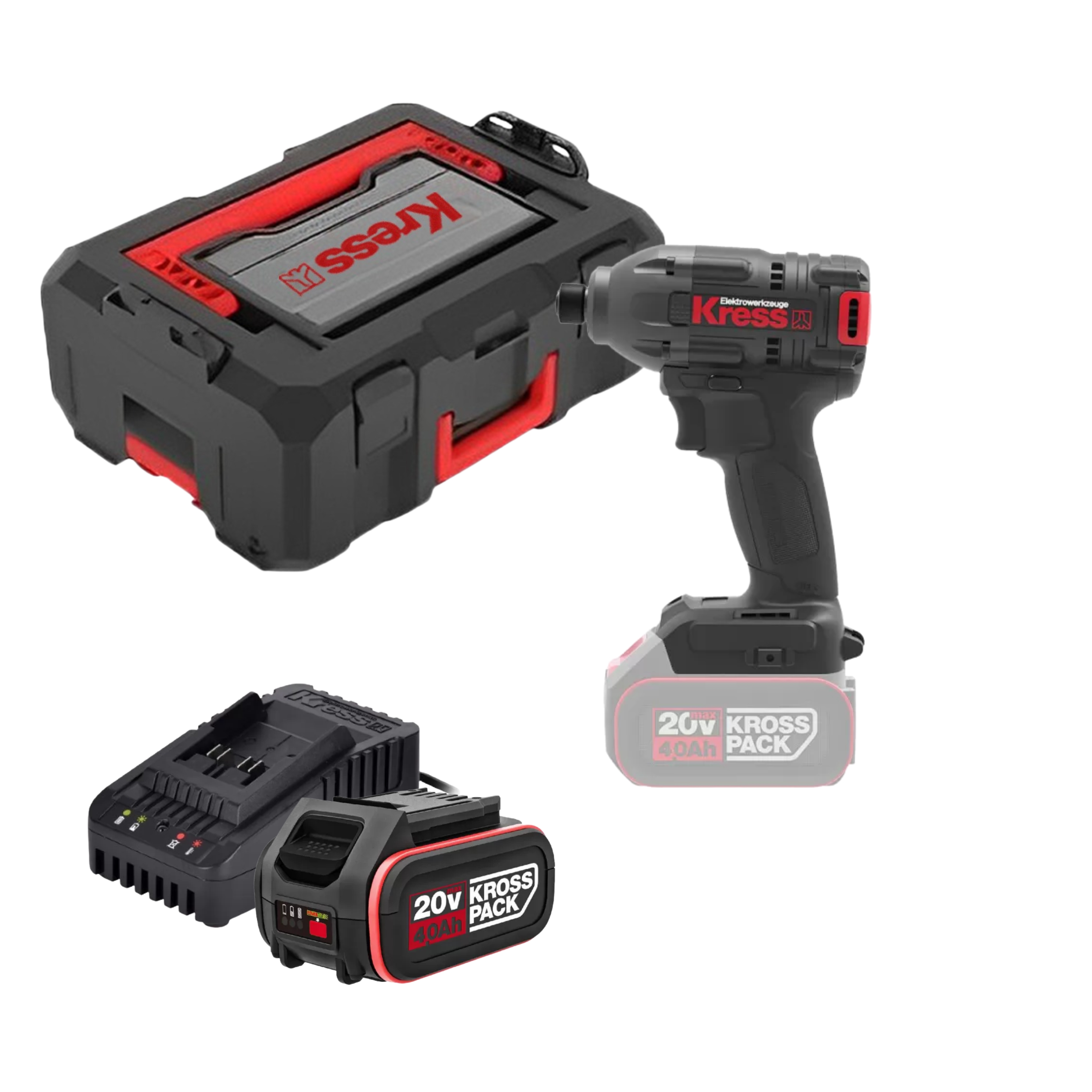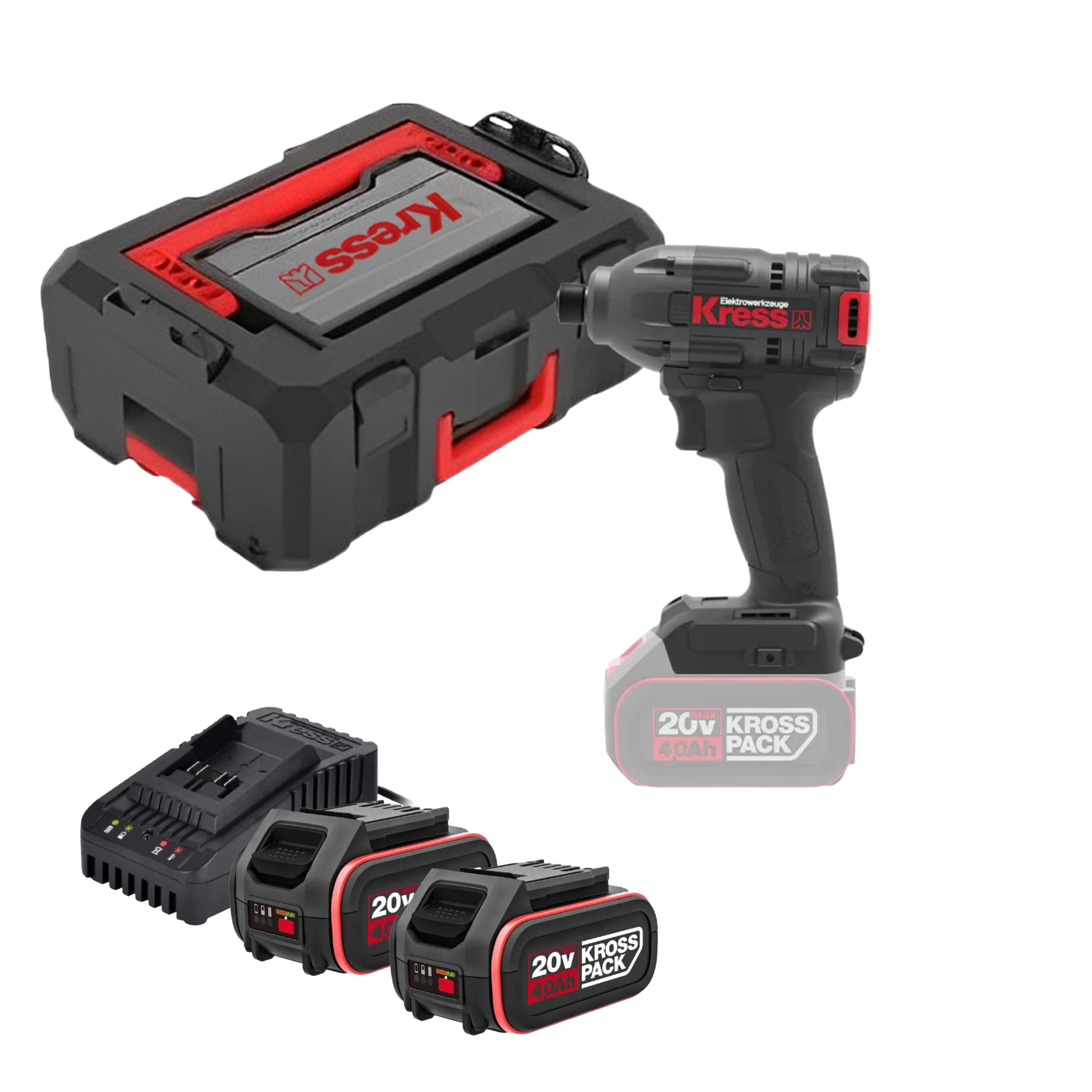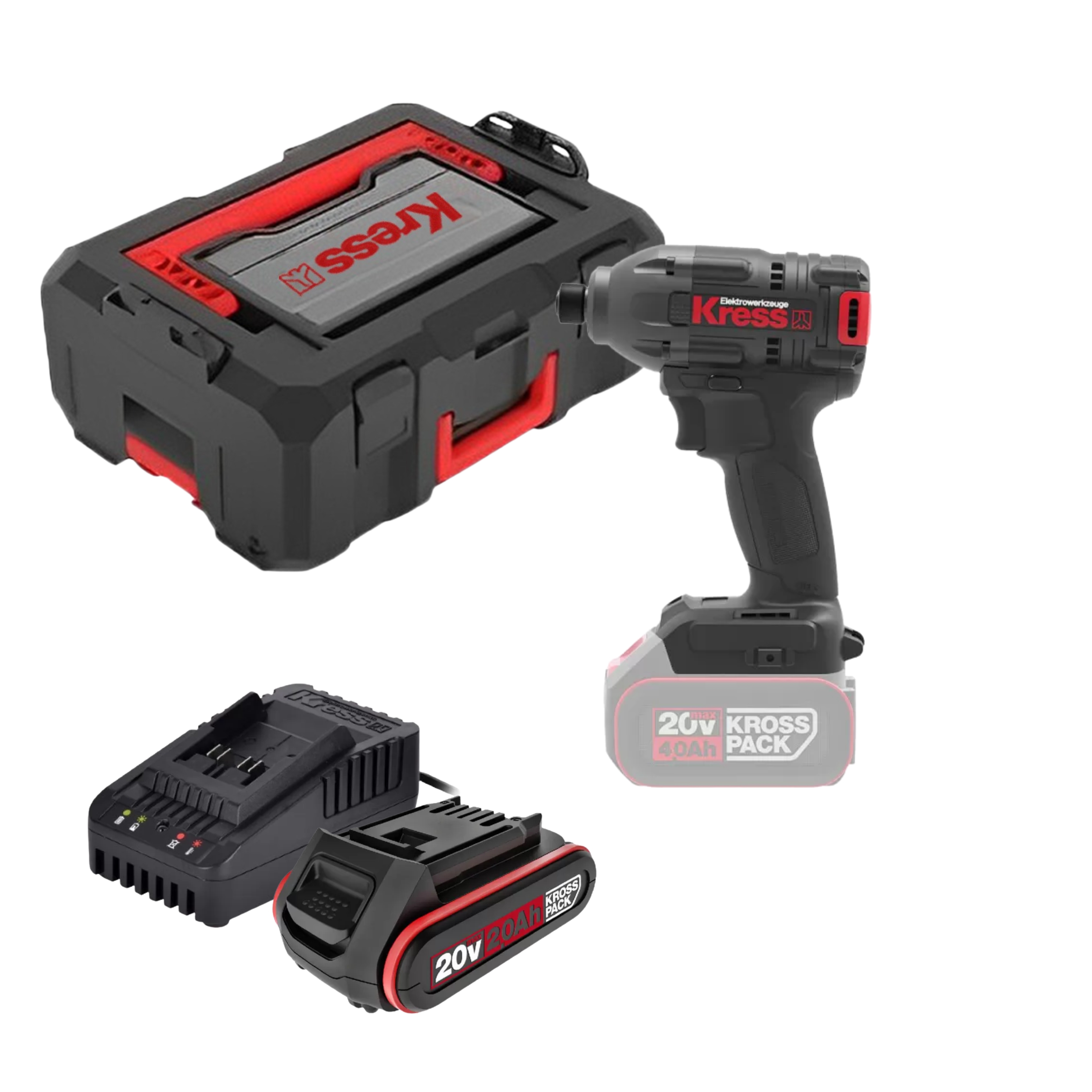מברגת אימפקט 20V בראשלס כולל זוג סוללות 4AH + מטען במזוודה KRESS KROSS PACK KU290 / KUB60