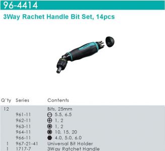 מברג רצ'ט לביטים 3 מצבים+ סט ביטים 14 יחידות WhirlPower 96-4414