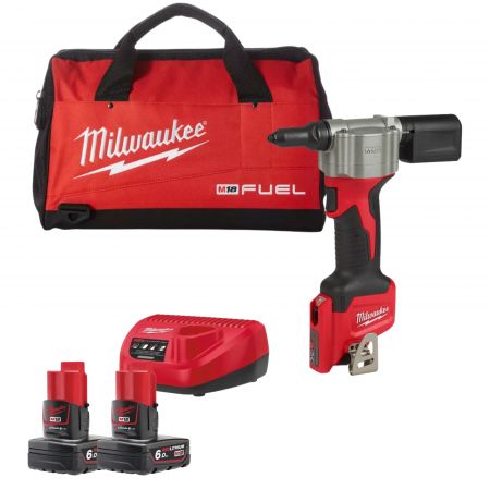 אקדח ניטים נטען 12V + זוג סוללות 6AH + מטען Milwaukee M12 2550-20 BPRT