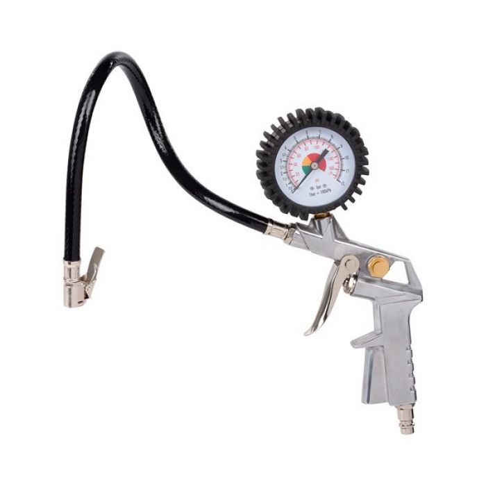 אקדח עם שעון לחץ למילוי אוויר POWERPLUS POWAIR0100- אקדח כסוף למילוי אוויר