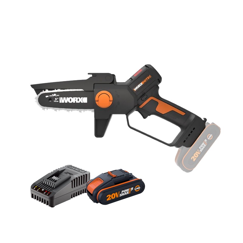 מסור שרשרת טלסקופי כולל גוזם ענפים + מוט טלסקופי + סוללה 2.0Ah + מטען מהיר WORX WG908E.9