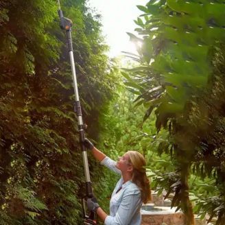 - סט מושלם לניסור וגיזום, עם מסור ענפים ומגזמת מתחלפים על מוט טלסקופי ארוך במיוחד