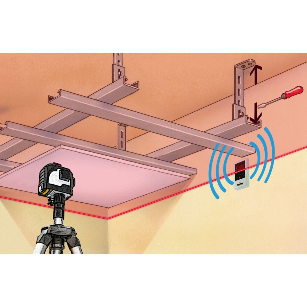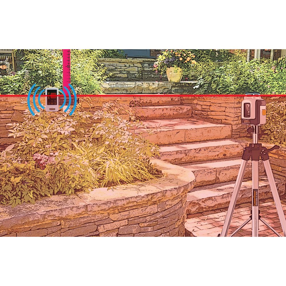 - המכשיר מזהה את קווי הלייזר הפועמים עד למרחק של 40 מטר וניתן לחיבור למטות מדידה - מושלם לקביעת מידות ייחוס.
