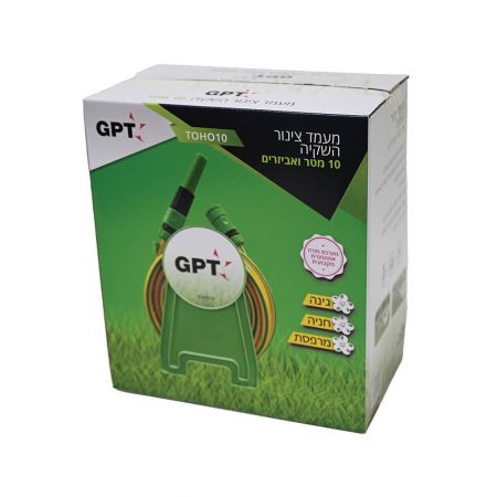 גלגלת השקיה עם צינור באורך 10 מ' + אביזרים GPT TOHO10מעמד צינור השקיה 10 מטר לשימוש ביתי