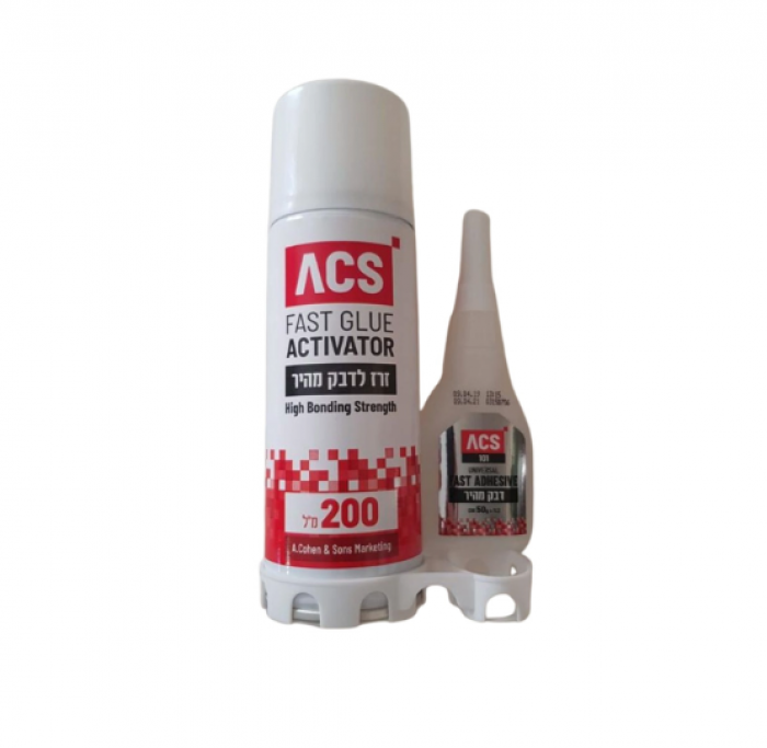 דבק מהיר 50 גרם+ זרז 200 מ"ל א+ב ACS Brightcom