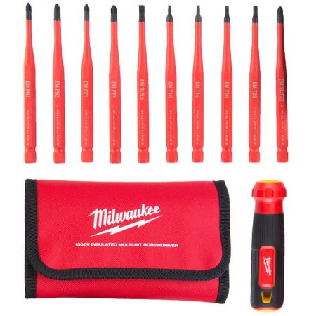 מברג מולטי ביט 10 ב- 1 מבודד VDE 1000V מוליך חשמל בנרתיק 4932493657 MILWAUKEEסט מברג Multi-Bit מבודד, מיועד לעבודות חשמל ותחזוקה, עם ביטים מתחלפים ונרתיק רך קומפקטי לשליפה מהירה באתר.