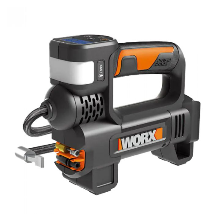 מדחס מיני + פנס נטען 20V (גוף בלבד) WORX WX092.9- מיני קומפרסור עד 10 BAR לצמיגים ומתנפחים