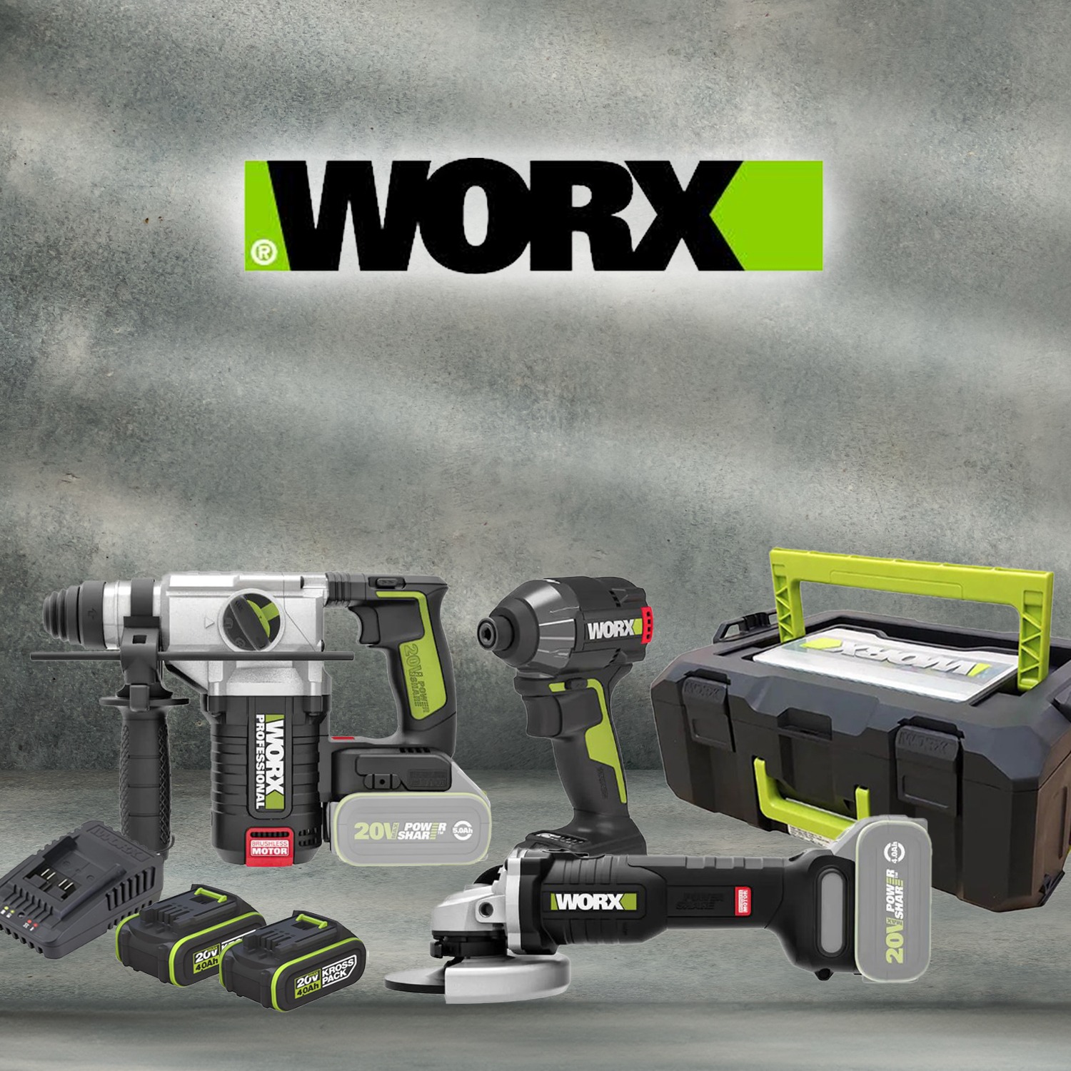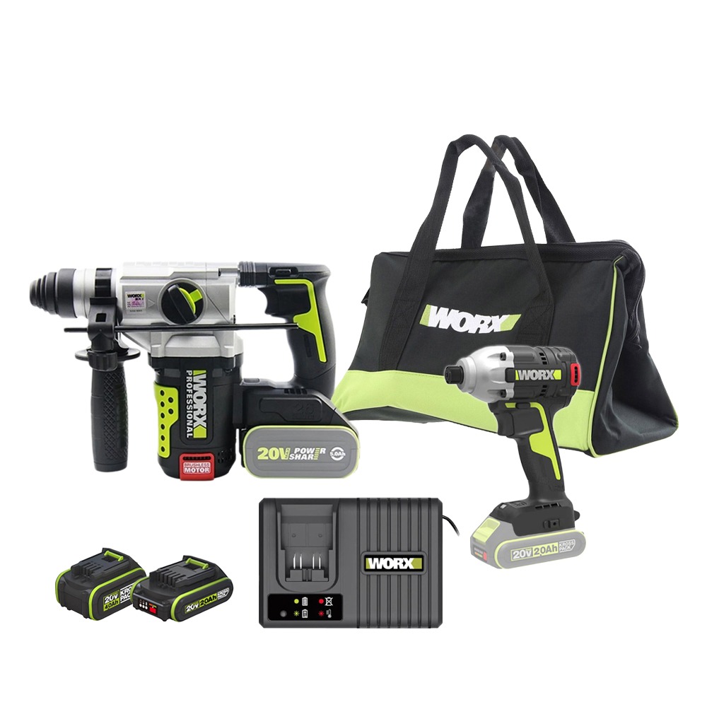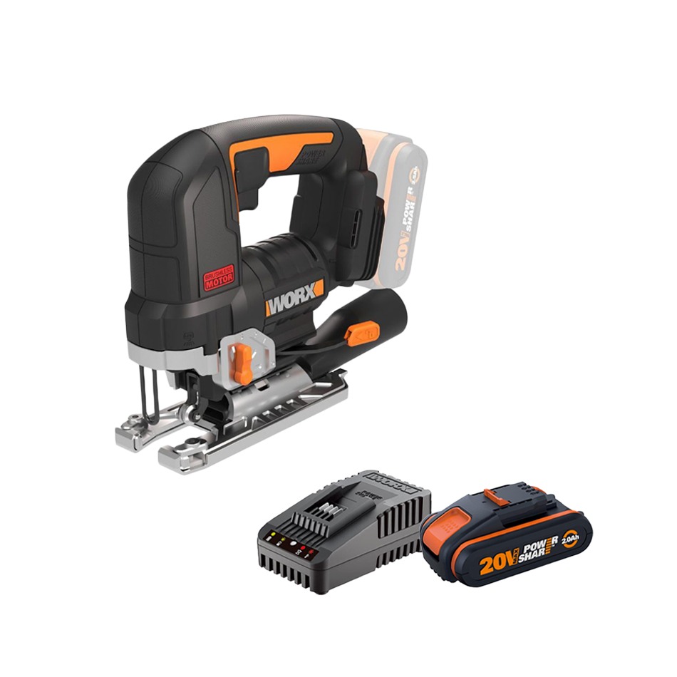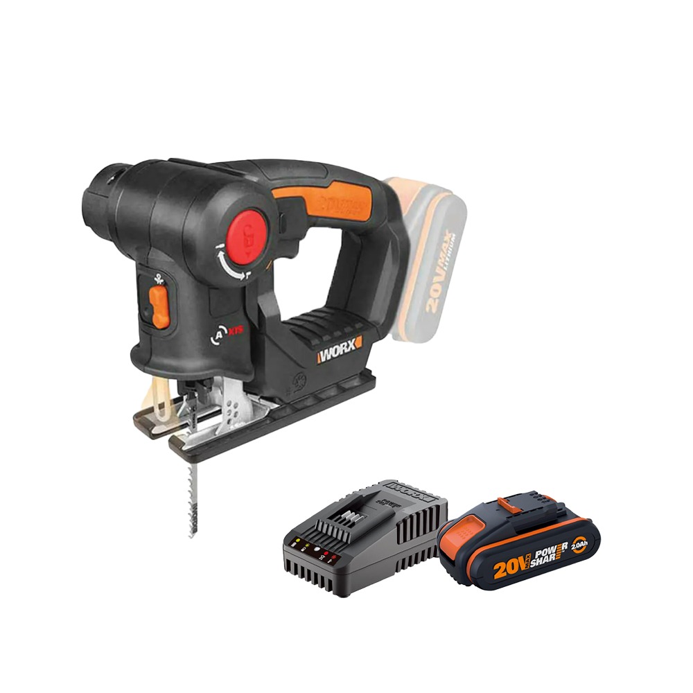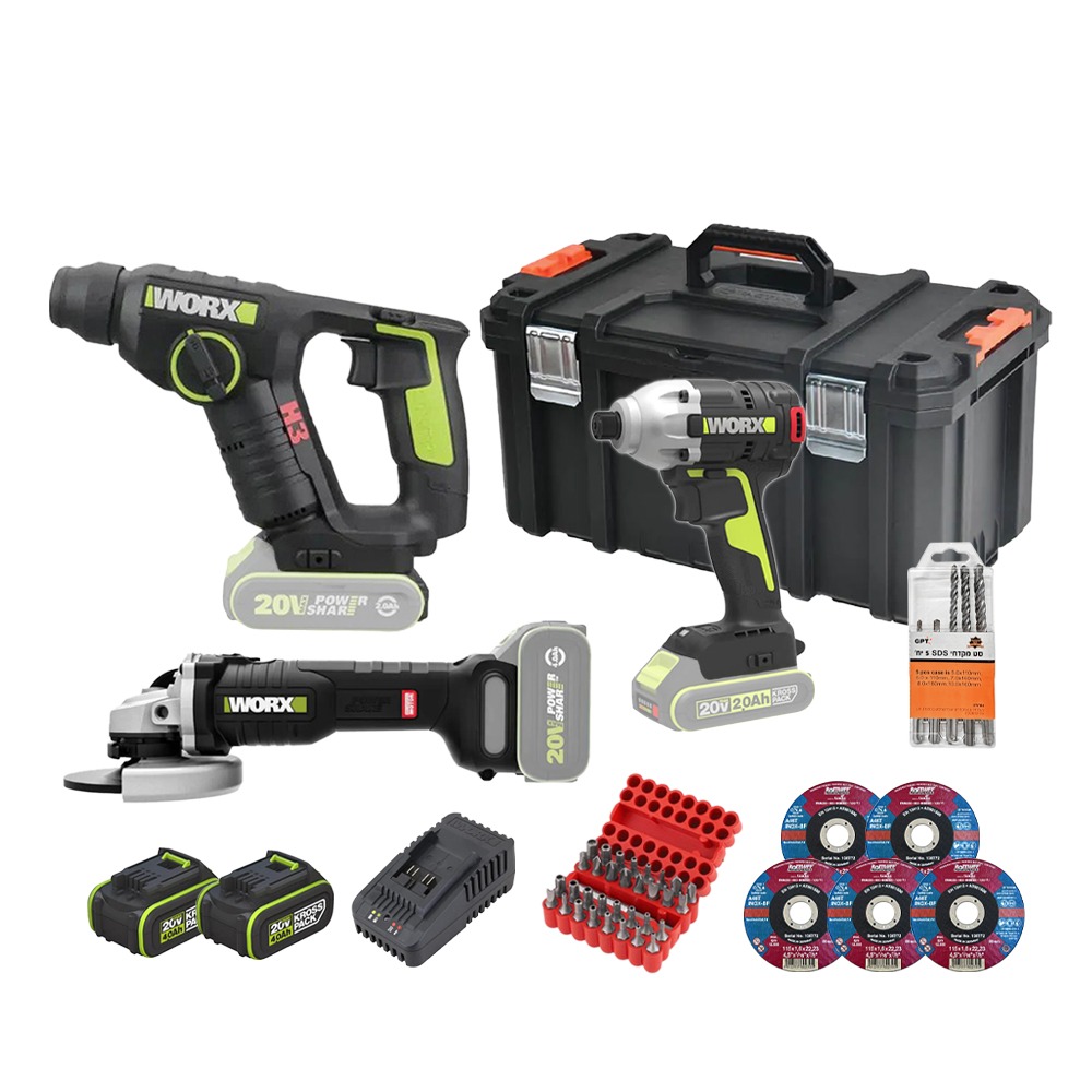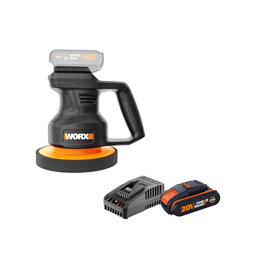 מלטשת נטענת 20V + סוללה 20V 2A + מטען מהיר אביזרים בתיק כלים WORX WX820.9