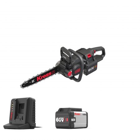 מסור שרשרת "14 בראשלס נטען 60V + סוללה 4AH + מטען מהיר KRESS KG367E.9