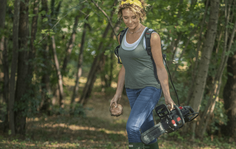 • מסור שרשרת נטען בין העוצמתיים ביותר שיש בשוק שמצויד עם מנוע ללא פחמים המפיק 2,500W עוצמתי במיוחד