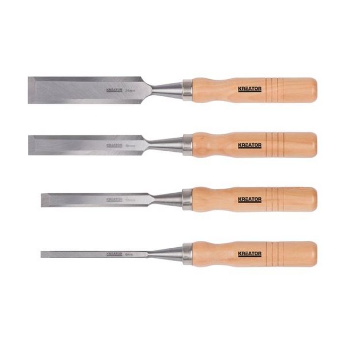 סט 4 איזמלים לעץ. עשויים מפלדת פחמן ומצוידים בידית עץ. הם באורך 250 מ"מ ולכל להב יש רוחב שונה: 6/12/18/24 מ"מ.למה לרכוש אצלנו באתר