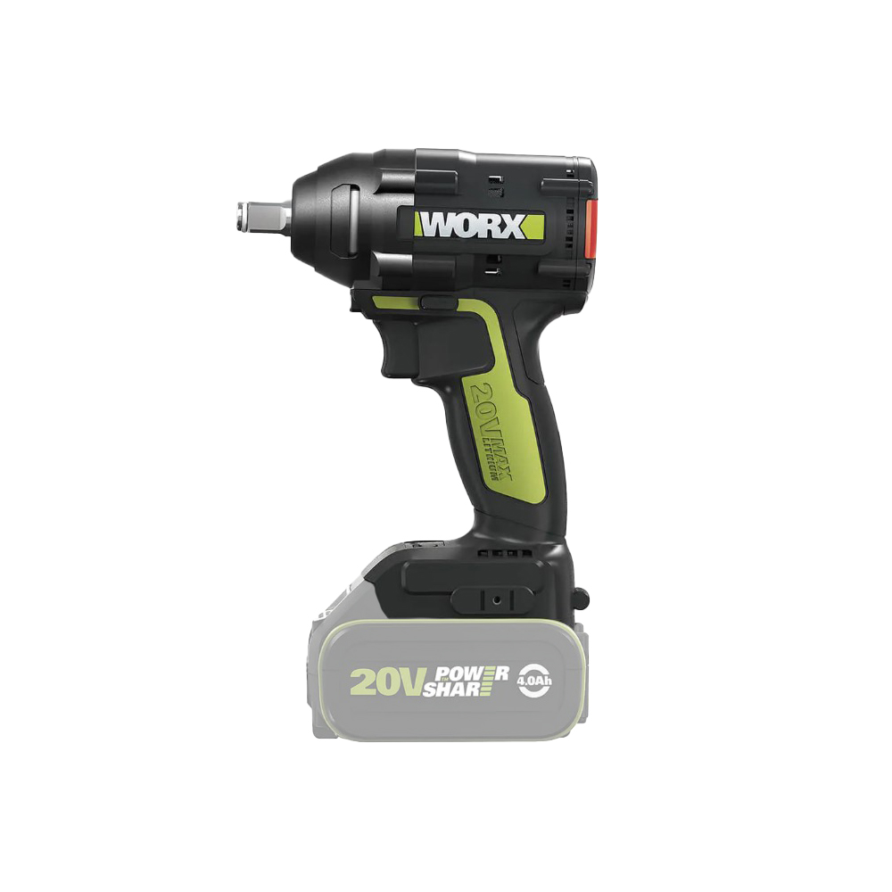 מפתח אימפקט נטען 20V דרייב "1/2 + סוללה 4A + מטען WORX WU279- מנוע ללא פחמים משפר עוצמה וחוזק.