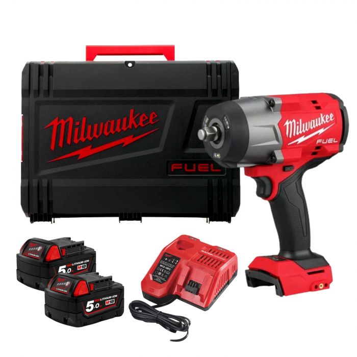 מפתח רטיטה "1/2 18V נטען + 2 סוללות 5AH + מטען מהיר רפיד במזוודה Milwaukee M18 FUEL™ FHIW2F12-502X 4933492783- מפתח רטיטה "1/2 עוצמתי במיוחד FUEL מבית Milwauke