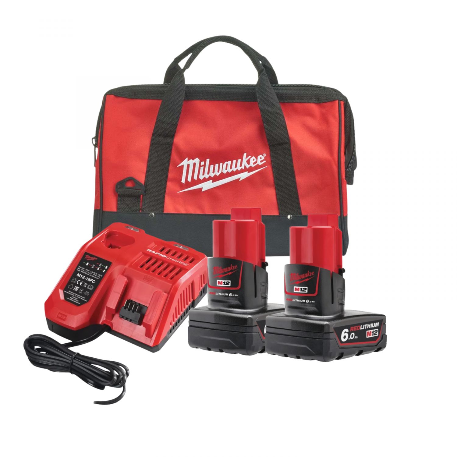 ערכת טעינה 12V זוג סוללות 6AH + מטען מהיר רפיד בתיק כלים Milwaukee M12™ REDLITHIUM™ B6