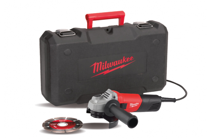 משחזת זווית "4.5 חשמלית 800W במזוודה כולל להב יהלום Milwaukee AG 800-115E- משחזת זווית "4.5 חשמלית מזוודת כולל להב יהלום מבית Milwaukee ארה"ב