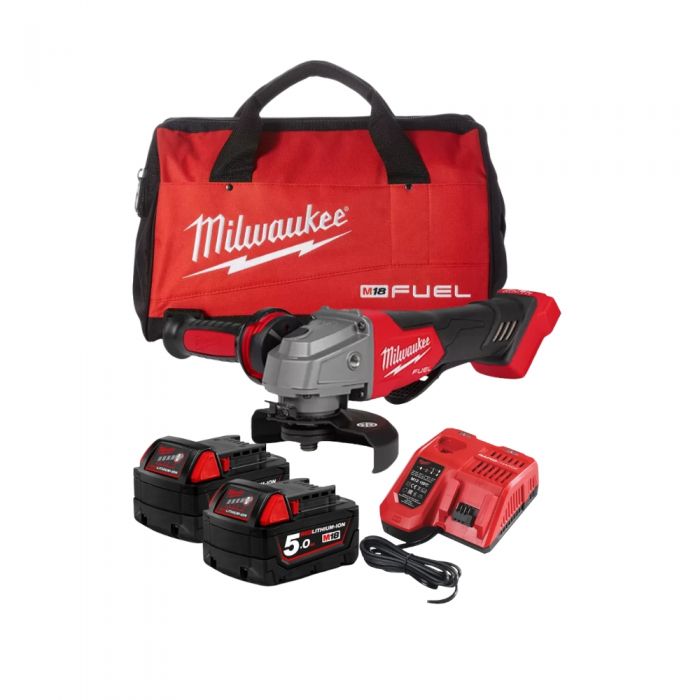 משחזת זווית "4.5 נטענת 18V BL דור 4 + 2 סוללות 5AH + מטען מהיר בתיק כלים Milwaukee FUEL M18 FSAG115X