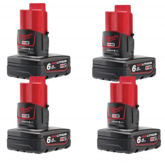 4 סוללות ליתיום Milwaukee M12 B6 12V 6AH