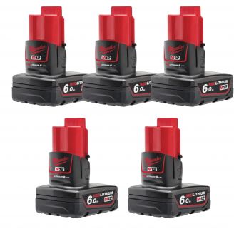5 סוללות ליתיום Milwaukee M12 B6 12V 6AH