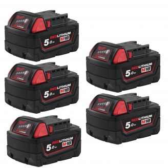 5 סוללות 2AH 18V ליתיום Milwaukee M18™ REDLITHIUM™ B2 A