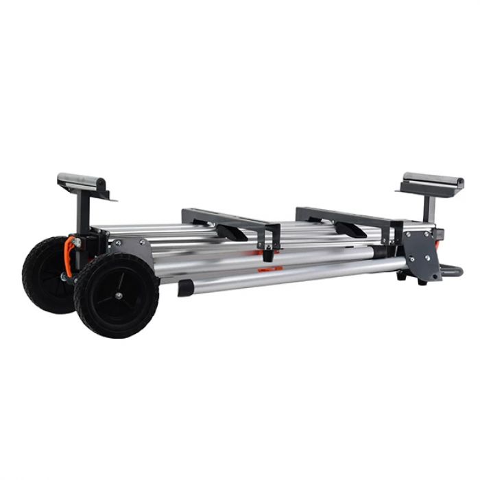- שתי גלגלות תמיכה צידיות מאפשרות תמיכה נוספת של העוּבַּד הנחתך ומסייעות בניסור מדויק יותר. גלגלות התמיכה ניתנות להרמה ולהורדה על מנת להתאים את הרמת העוּבַּד בדיוק לגובה הרצוי.
