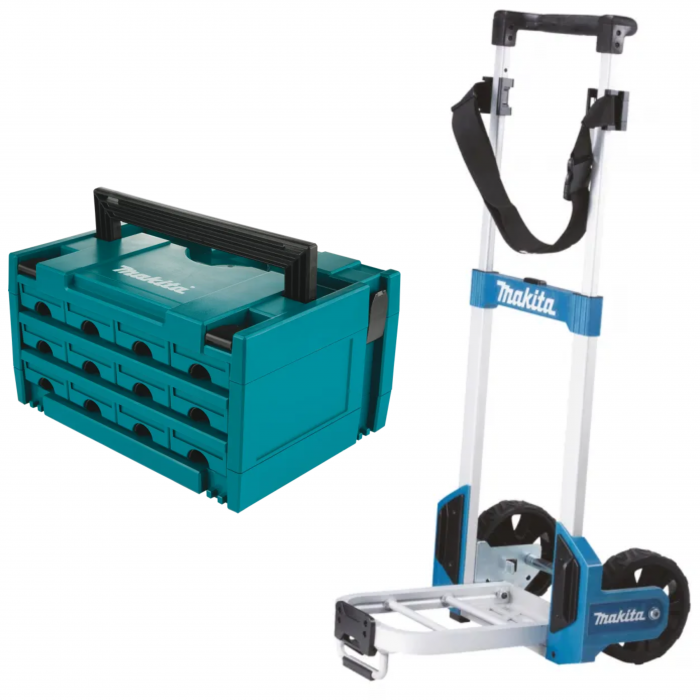 - עגלת משא מתקפלת ייחודית מתאימה לנשיאת ארגזי ה- makpac של מקיטה