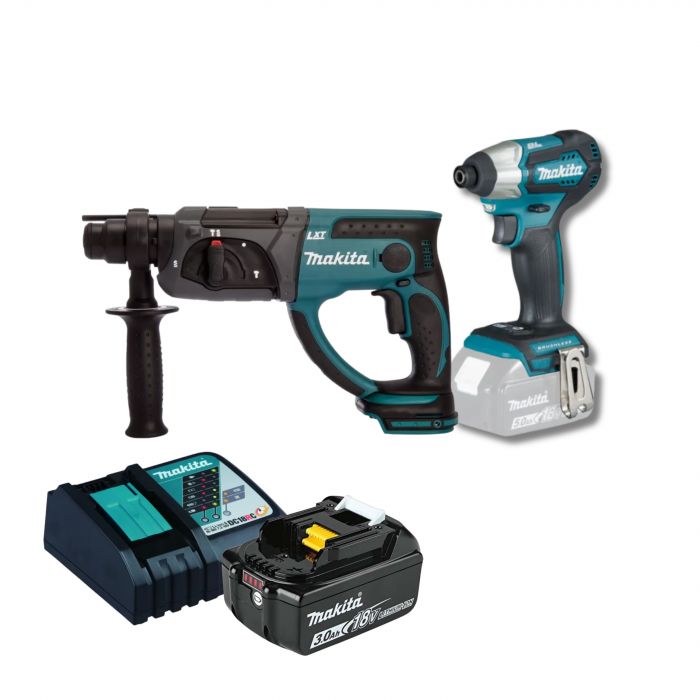 סט כלים נטענים מברגת אימפקט + פטישון + סוללה 3AH + מטען MAKITA DHR202Z DTD157Z