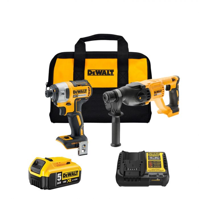 סט כלים נטענים 18V מברגת אימפקט 887+ פטישון 133 + סוללה 5AH + מטען מהיר DEWALT BRUSHLESS XR