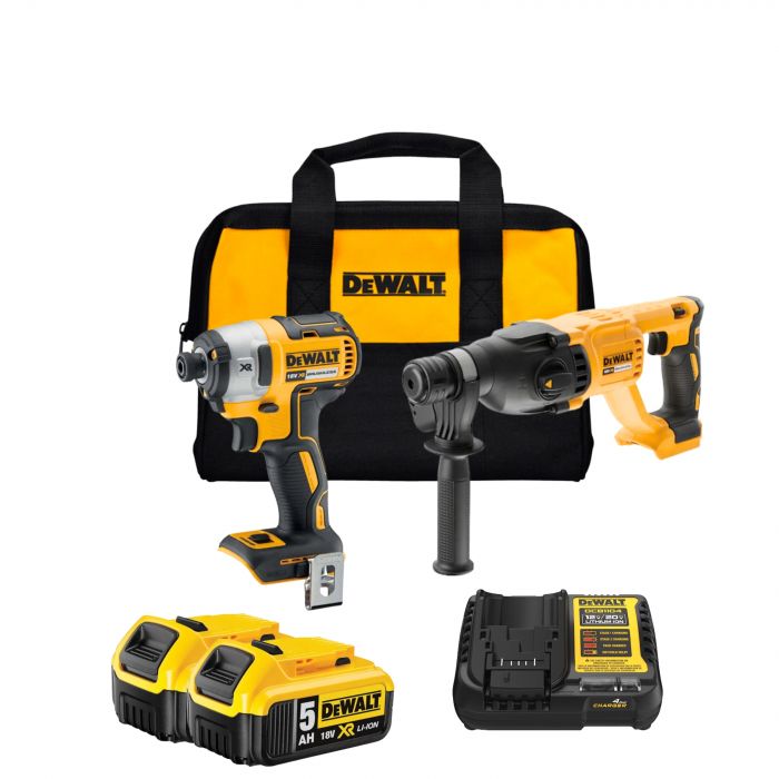 סט כלים נטענים 18V מברגת אימפקט 887+ פטישון 133 + 2 סוללות 5AH + מטען מהיר DEWALT BRUSHLESS XR
