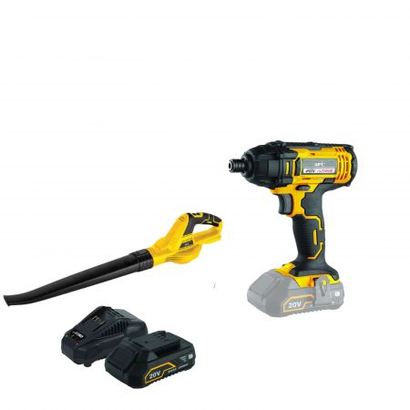 סט כלים נטענים 20V מברגת אימפקט + מפוח עלים + סוללה 2AH + מטען GPT