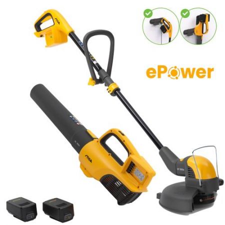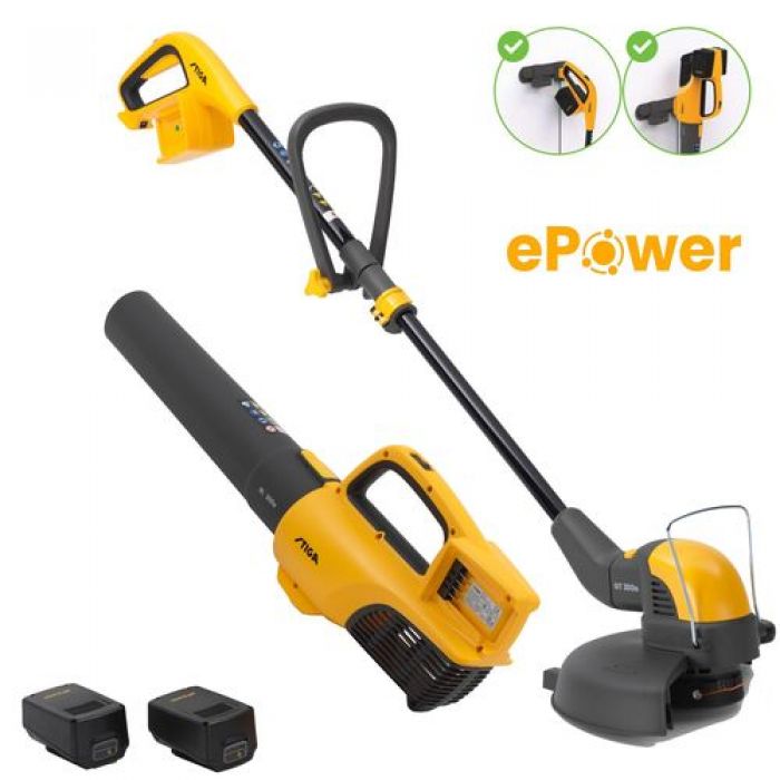 סט כלי גינון נטענים 2X20V מפוח+ חרמש + 2 סוללות 2AH + זוג מתלים סדרה 300 STIGA