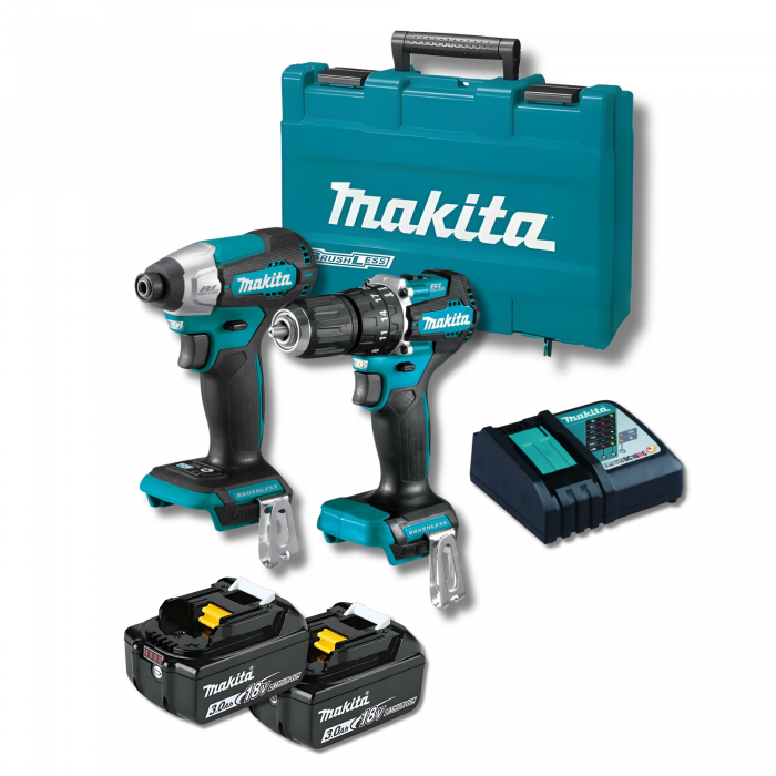 סט מברגות בראשלס 18V כולל 2 סוללות 3AH + מטען במזוודה MAKITA DLX0303MAK