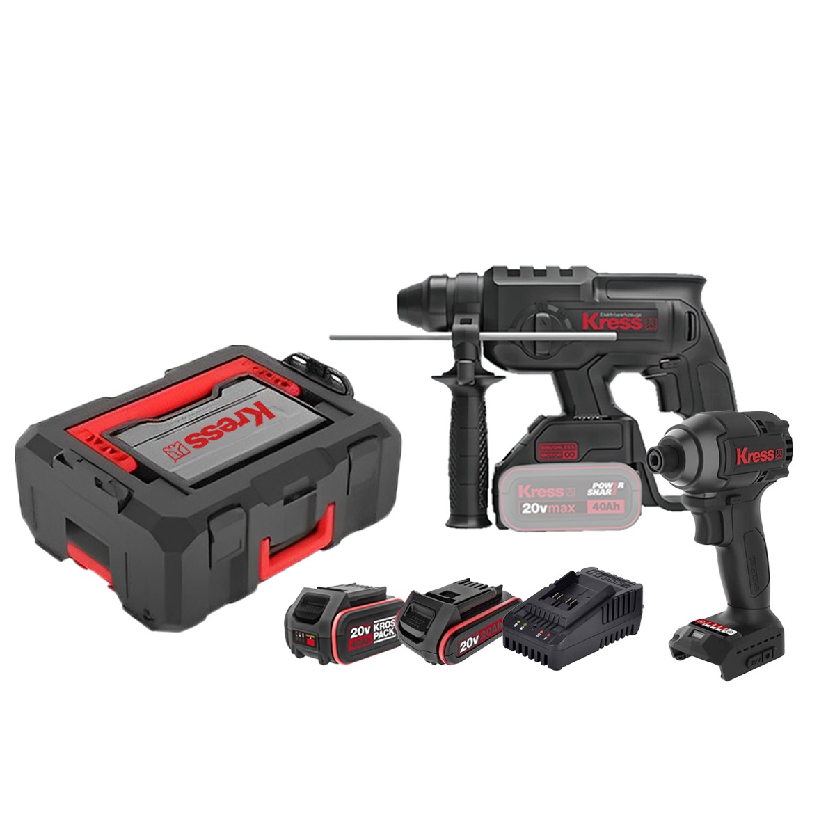 סט פטישון KU390.9 20V BL + מברגת אימפקט KU280.9 20V BL + סוללה 4A/2A + מטען בארגז טכנאים KRESS