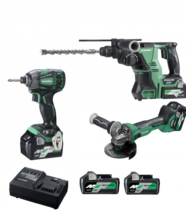 סט 3 כלים 36V בראשלס מברגת אימפקט + פטישון + משחזת נטענים + 2 סוללות 5AH + מטען מהיר במזוודה HIKOKI KC18DSL3