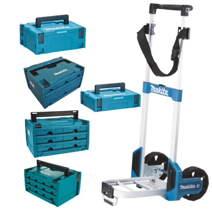 - עגלת משא מתקפלת ייחודית מתאימה לנשיאת ארגזי ה- makpac של מקיטה