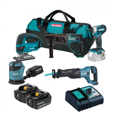 סט 5 כלים נטענים 18v כולל 2 סוללות 5AH + מטען מהיר בתיק כלים MAKITA
