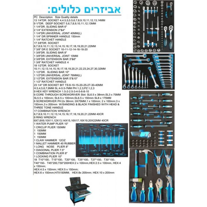 - עגלה מקצועית ברמה גבוהה עם כלים מקצועיים.