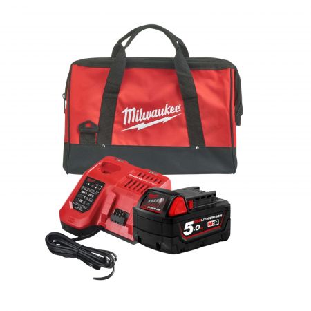 ערכת טעינה 18V סוללה 5AH + מטען מהיר רפיד בתיק כלים Milwaukee M18 red-lithium