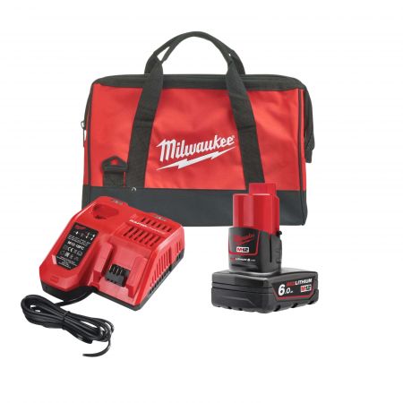 ערכת טעינה 12V סוללה 6AH + מטען מהיר רפיד בתיק כלים Milwaukee M12™ REDLITHIUM™ B6