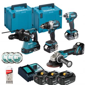 פטישון נטען 18V כולל 2 סוללות 5AH + מטען מהיר בתיק כלים MAKITA DHR202Z