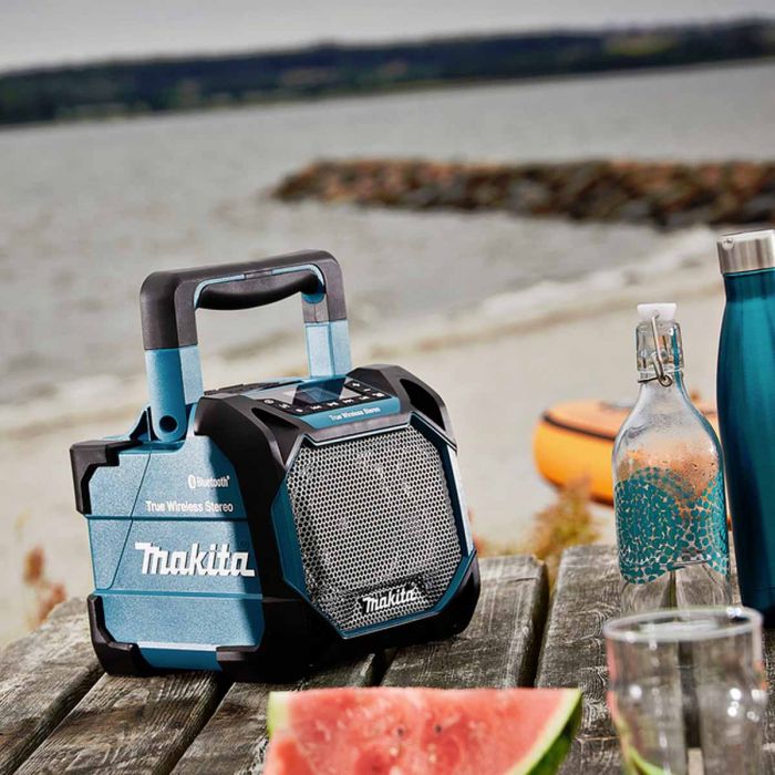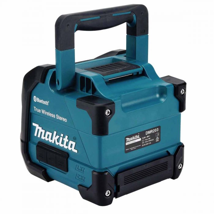 רמקול נטען 18V לאתרי עבודה + סוללה 5AH + מטען MAKITA DMR203Z LXT- רמקול עבודה עמיד לאתרי עבודה ולשטח, עם Bluetooth ואפשרות חיבור AUX.