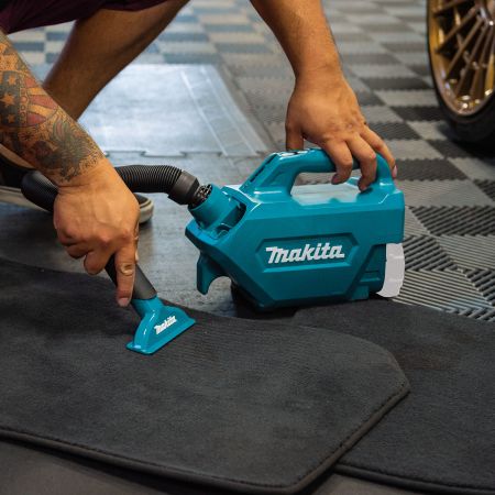 • שואב אבק קומפקטי ואלגנטי מבית Makita, חלק ממערכת 18V LXT™, המיועד במיוחד לניקוי פנימי של כלי רכב, רהיטים, סדנאות קטנות והדגשות מקצועיות.