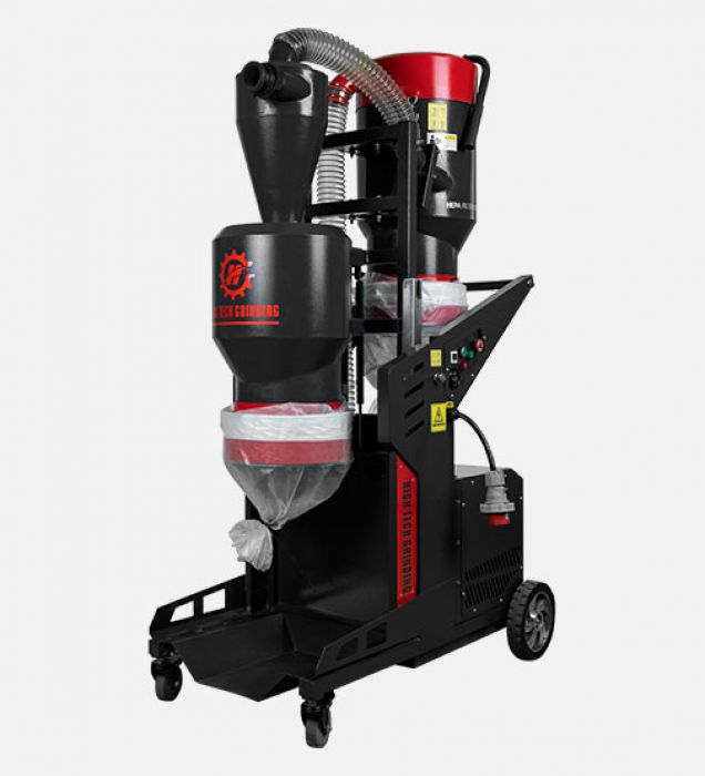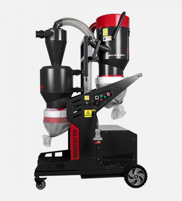 • מערכת סינון דו‑שלבית עם פרה‑ספטור ציקלוני + פילטר HEPA 13 – אמינות > 99.99% בפילטרציה של חלקיקי אבק עד 0.2 מיקרון
