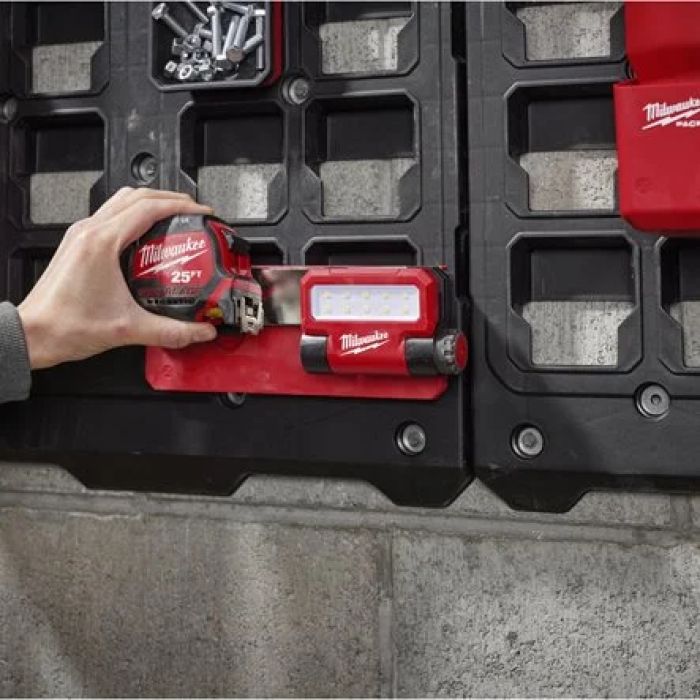 - תלייה בטוחה במיוחד – מתחבר בחוזקה ללוחות קיר PACKOUT™; מתאים גם לעלייה על מכסי ארגזים.